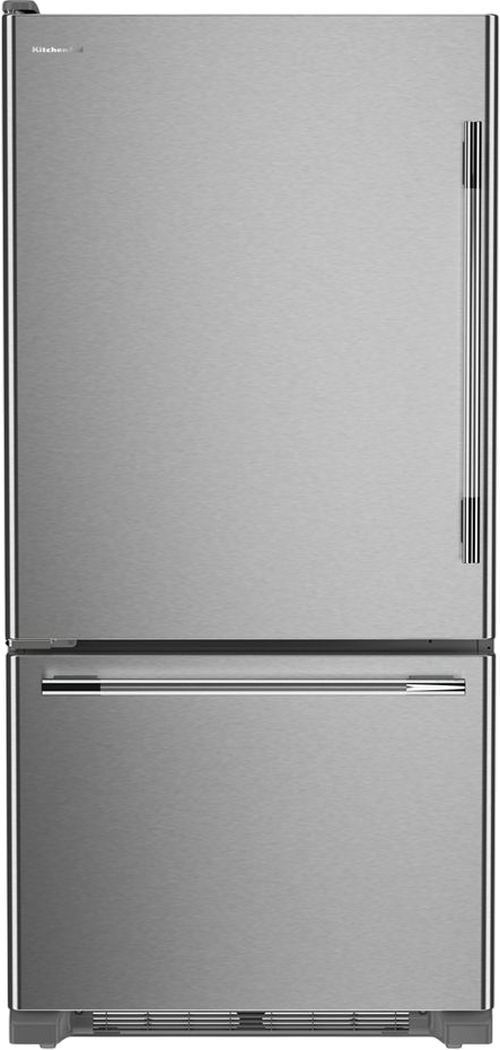 Enjoy freshness within reach. This KitchenAid® standard-depth bottom mount refrigerator features the Preserva® food care system to help keep your ingredients fresh and flavorful. Plus, the full-width pantry lets you store more and bigger ingredients without fighting for space. All in a refrigerator with ultra-bright LED Lighting and spill-resistant framed shelves that add style with metallic accents.Read More
